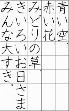 ひらがな、カタカナ、学校で習った漢字を中心に練習します。