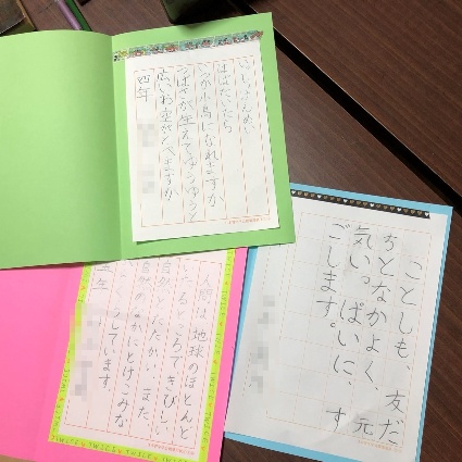 書初めや夏休みの宿題など、学校の課題には優先して取り組みます。